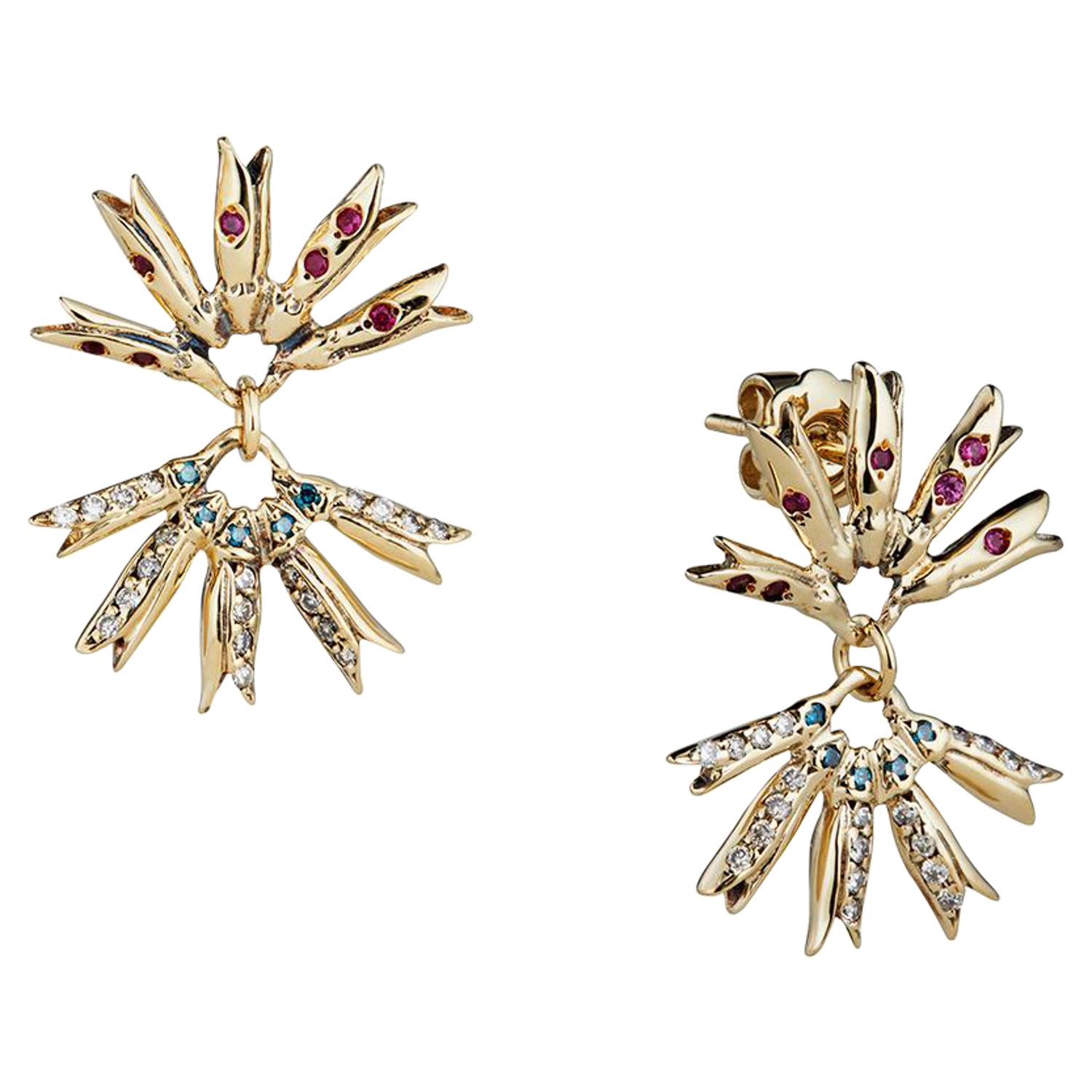 Lilly Of The Valley Drop Earrings With Diamonds And Pink Sapphires For Sale At 1stdibs